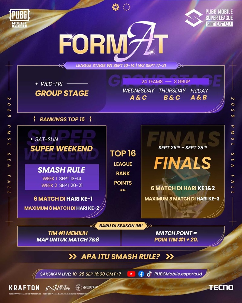 2025 PUBG MOBILE Super League Southeast Asia (PMSL SEA) Fall resmi bergulir di Bangkok, Thailand, mulai 10 hingga 28 September 2025. Turnamen ini menjadi penutup dari rangkaian PMSL SEA tahun ini, sekaligus menjadi jalur resmi menuju ajang 2025 PUBG MOBILE Global Championship (PMGC).