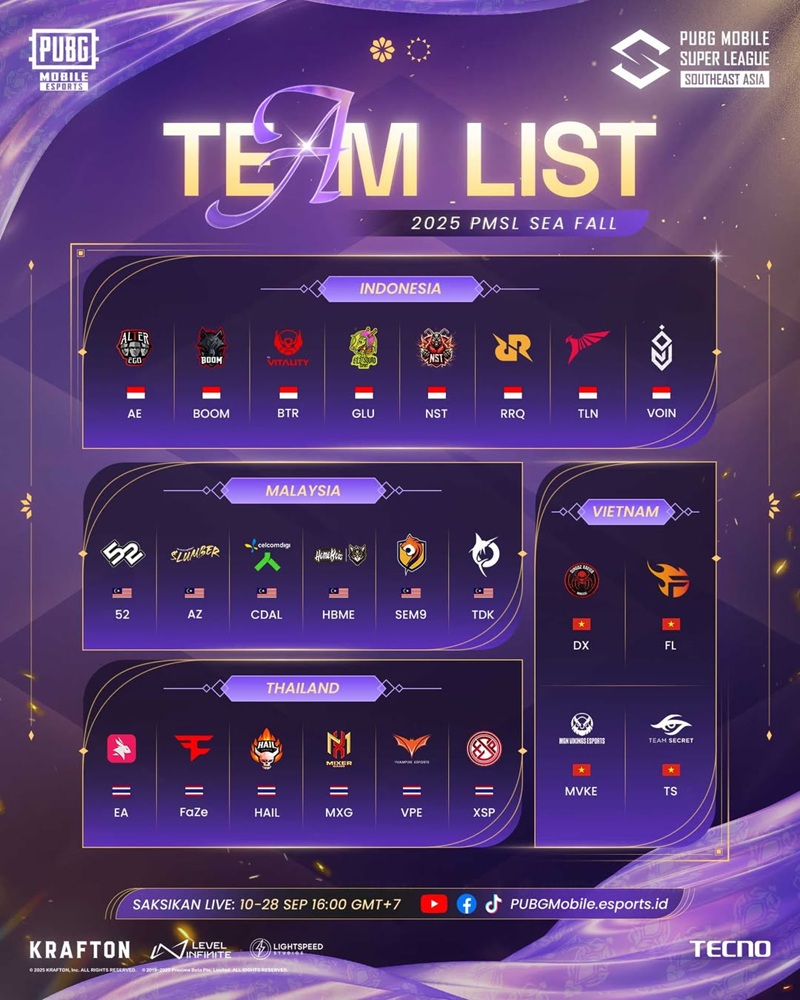 Daftar Lengkap Tim Peserta 2025 PMSL SEA Fall