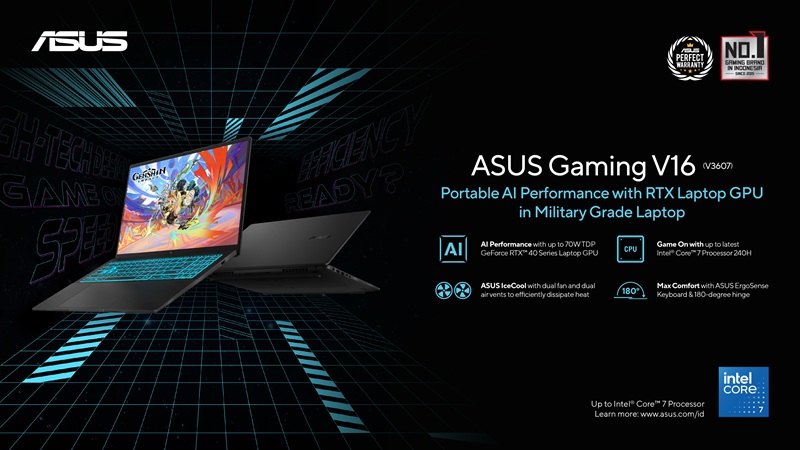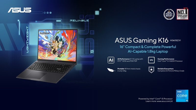 ASUS Indonesia berkolaborasi dengan Genshin Impact untuk menghadirkan pengalaman petualangan terbaik di ASUS Gaming Series. Melalui kolaborasi ini, ASUS dan Genshin Impact akan memastikan gamers untuk memainkan Genshin Impact dengan setting grafis paling tinggi secara mulus menggunakan ASUS Gaming V16 ataupun ASUS Gaming K16.