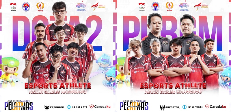 Timnas Esports Indonesia nomor DOTA2 (kiri) dan nomor PUBG Mobile (kanan).