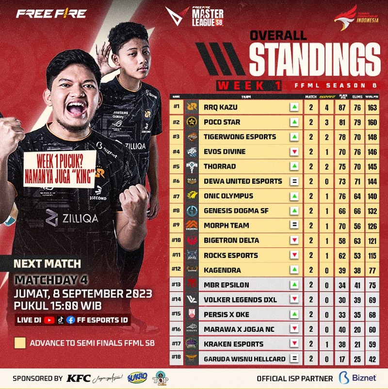 Week perdana Free Fire Masters League Season 8 telah berlalu. Beberapa tim sudah ngegas penuh di pekan pembuka bahkan catatkan beberapa rekor menarik. Bang Fayad bersama Poco Star jadi salah satu tim paling menonjol dengan keberhasilan tiga kali Booyah.