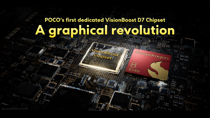 POCO F7 Ultra memiliki keunggulan tambahan dengan VisionBoost D7, chipset grafis eksklusif pertama dari POCO yang ditempatkan di dekat chipset utama. Fitur ini mengoptimalkan Smart Frame Rate, memastikan stabilitas hingga 120 frame per detik. Selain itu, VisionBoost D7 mendukung 2K Super Resolution, menghadirkan tampilan gambar yang lebih tajam dan detail. Fitur Game HDR semakin meningkatkan kualitas visual dengan warna yang hidup dan kontras yang lebih dinamis. Teknologi Dual-Core Visuals semakin menyempurnakan pengalaman grafis, didukung oleh WildBoost Optimization 4.0, yang mengintegrasikan Snapdragon 8 Elite Mobile Platform dan VisionBoost D7 untuk kinerja maksimal.