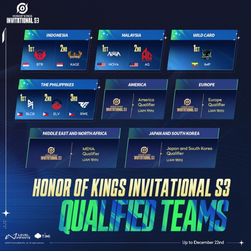 Selain Bigetron Sigma dan Kagendra, berikut adalah daftar tim yang telah lolos kualifikasi dan siap bertanding di HOK Invitational S3: