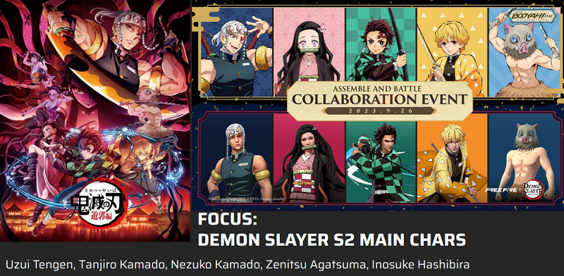 Bertempat di kantor Garena bilangan Kuningan, Jakarta, pihak Garena mempresentasikan langsung klip dan potongan video kolaborasi ini bahkan mengajak media untuk menjajal langsung gameplay menggunakan skin Demon Slayer. Beberapa karakter yang tampil di event kali ini adalah Tanjiro, Nezuko, Zenitsu, Inosuke dan Tengen Uzui.