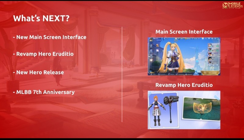 Menurut bocoran dari pihak yang sama, beberapa hero seperti Johnson, X Borg, Layla dan beberapa hero dari region Eruditio bakal terkena revamp. Untuk hero baru, ia memberi petunjuk kalau masih ada hubungan dengan Layla.
