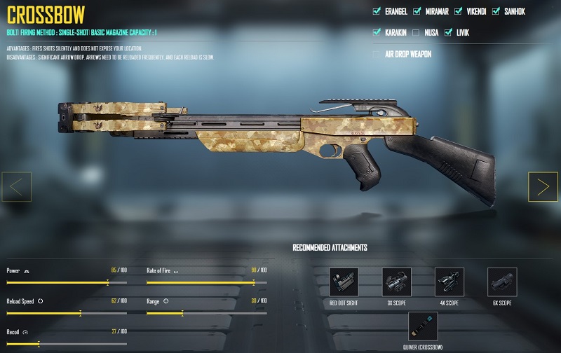 Pilihan terakhir Rosemary jatuh pada Crossbow, sebuah senjata yang sering diremehkan oleh banyak pemain di ranked PUBG MOBILE. Meskipun mudah ditemukan, banyak pemain yang memilih untuk melewatkan Crossbow dan beralih ke senjata lain. Namun, menurut Rosemary, Crossbow punya kekuatan yang cukup overpower.