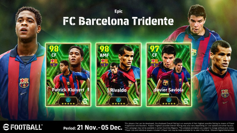 Juga akan hadir event bertema khusus: “European Clubs”. Pemain dapat bermain secara PvP menggunakan klub-klub besar dari liga Eropa, dapatkan hingga 40.000 EXP dan 2 Booster Token acak. Terakhir, melalui Campaign Achievement, pemain bisa mendapatkan: 3x Highlight: FC Barcelona chance deal; 3x Highlight: AC Mina chance deal; 120.000 GP; 108.000 EXP; 100 eFootball™ Coin; 2x Skill Training Program; 2x Position Training Program; dan 1x Booster Token acak