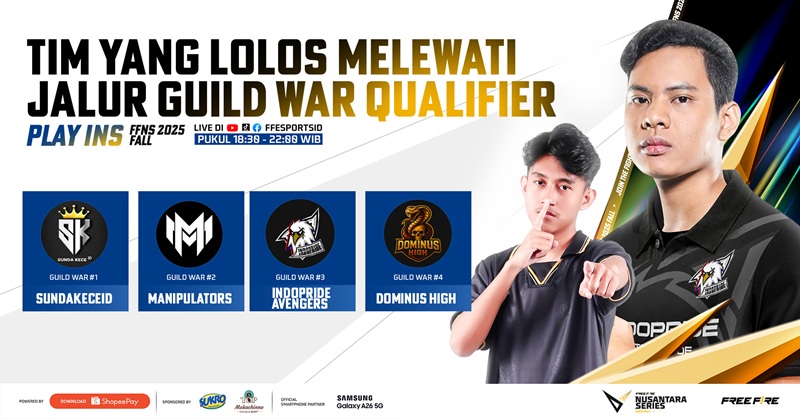 Ajang Free Fire Nusantara Series (FFNS) 2025 Fall powered by ShopeePay akan segera memasuki babak krusial: Play-ins, yang digelar pada 27–29 Juni 2025. Sebanyak 36 tim terbaik dari seluruh penjuru Indonesia akan memperebutkan 9 tiket terakhir menuju Grand Finals yang akan berlangsung di Makassar pada Juli mendatang.