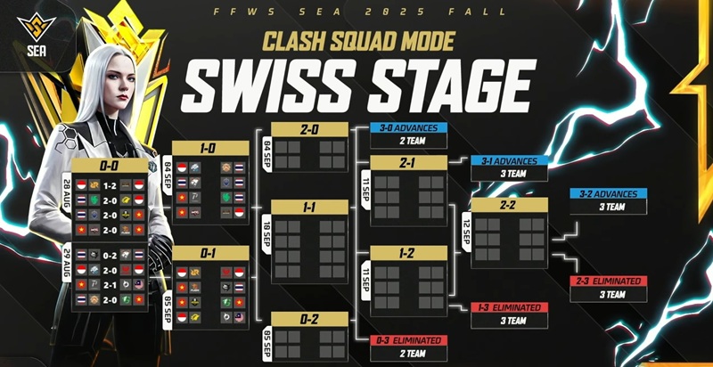 Selain mode Battle Royale (BR), ajang Free Fire World Series Southeast Asia (FFWS SEA) 2025 Fall juga menggelar babak penyisihan mode Clash Squad (CS) pada 28–29 Agustus 2025. Kompetisi 4 vs 4 ini mempertemukan 16 tim terbaik dari fase Knockout FFWS SEA 2025 Fall pekan pertama, termasuk lima wakil Indonesia: EVOS Divine, RRQ Kazu, Bigetron by Vitality, ONIC Olympus, dan Kagendra.
