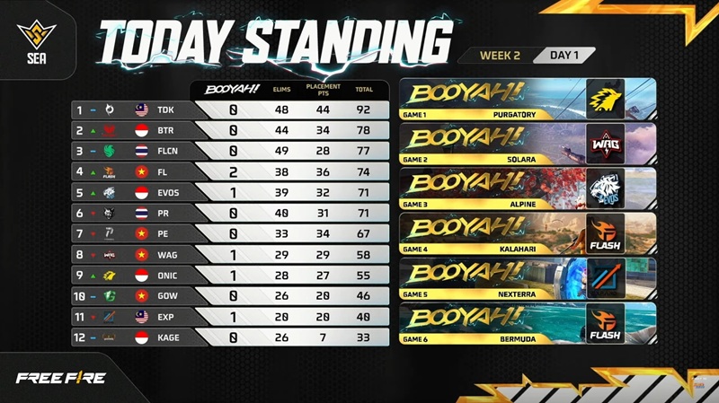 Seolah ingin membuktikan kapasitas mereka sebagai tim Free Fire terbaik di negeri Jiran, Todak tampil superior di pembuka hari pekan kedua. Meski tidak mendapatkan BooYah performa stabil Todak sepanjang hari kemarin membuat mereka mendapatkan poin tertinggi.