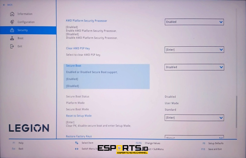 Dalam pengaturan BIOS, pilih "Novo Button Menu" sebagai metode pengaturan BIOS, lalu pilih "More settings" (pengaturan lanjutan). Masuk ke menu "Security", ketuk kolom "Secure Boot", dan ubah menjadi "Disabled". Setelah itu, colokkan kembali USB flash drive ke perangkatmu.