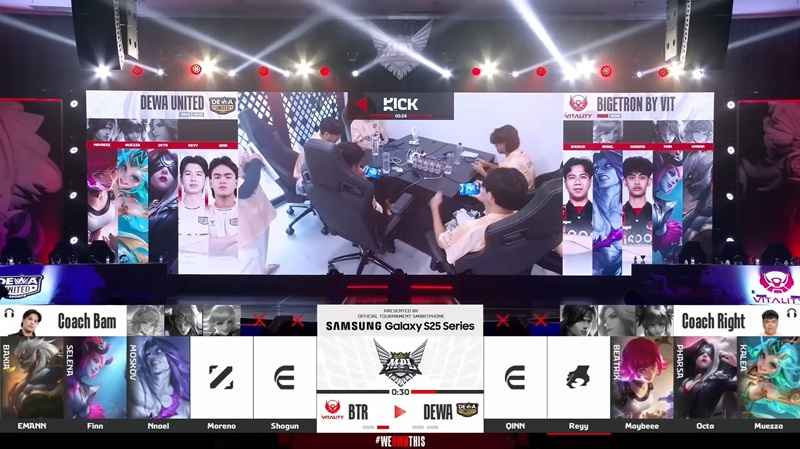 Game penentu berjalan ketat. Dewa United kembali mengandalkan strategi pickoff dan sempat unggul dalam beberapa team fight di mid game. Namun, saat mencoba mengamankan Lord di menit ke-19, miskalkulasi membuat momentum berbalik ke tangan Bigetron.