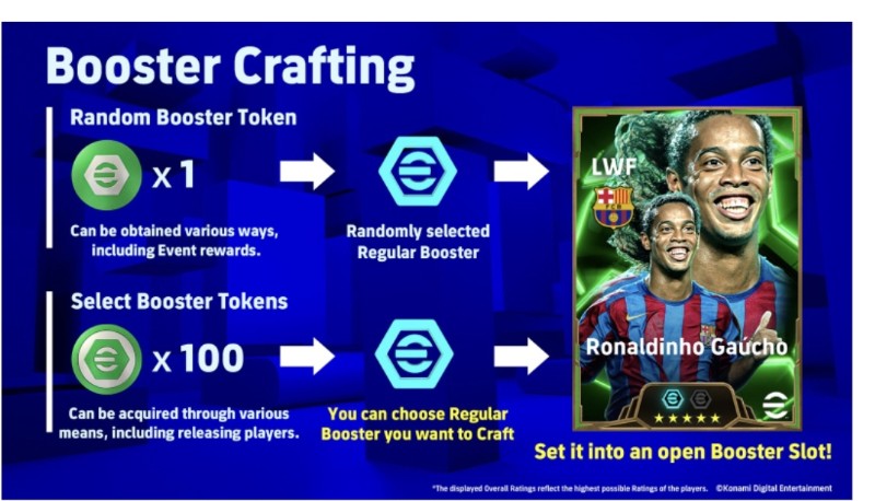 Fitur baru “Slot Booster” dihadirkan untuk menyesuaikan atribut pemain, memberi mereka peningkatan statistik ekstra. Dengan mendapatkan dan menggunakan “Random Booster Token” dan “Select Booster Token”, player dapat craft salah satu dari 17 jenis Booster untuk para pemain mereka. Pemain legendaris dunia Ronaldinho Gaúcho, Deco, dan Ludovic Giuly akan muncul sebagai kartu Epic dengan “Booster Slot” di update baru ini.