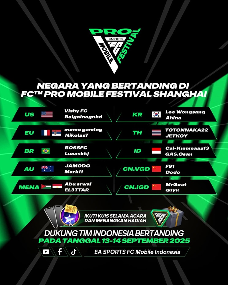 Setelah melewati tiga tahap kualifikasi nasional yang panjang dan kompetitif, Dennis “Kuma” dan Fauzan “Osan” resmi menjadi wakil Indonesia di ajang internasional EA SPORTS FC™ Pro Mobile Festival 2025. Turnamen ini akan digelar pada 13–14 September 2025 di Shanghai Jingwu Sports Center, Tiongkok, dan menghadirkan format unik yang menggabungkan pro player dan content creator dalam satu tim.