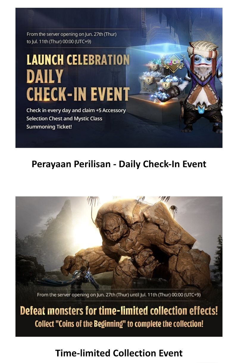 Pada perilisan "ArcheAge War", "Launch Celebration Daily Check-In Event" dan "Time-limited Collection Event" akan digelar. Setelah server game resmi dibuka, para pemain dapat melakukan check-in setiap hari di dalam game untuk menerima item in-game seperti +5 Enhanced Accessories dan kupon Mysterious Profession Summoning, yang mampu secara cepat meningkatkan Combat Power para pemain. Selain itu, selama event perilisan, pemain bisa mengalahkan para monster untuk mengumpulkan "Starting Coins" dan mendapatkan efek Collection yang terbatas.