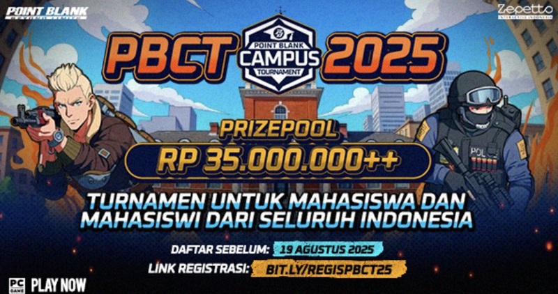 Kabar gembira datang bagi para mahasiswa pecinta esports. Zepetto Indonesia resmi menggelar Point Blank Campus Tournament (PBCT) 2025, sebuah ajang kompetitif yang dirancang khusus untuk mahasiswa dari seluruh universitas dan perguruan tinggi di Indonesia. Turnamen ini menjadi wadah bagi generasi muda untuk menunjukkan kemampuan mereka di panggung esports nasional.