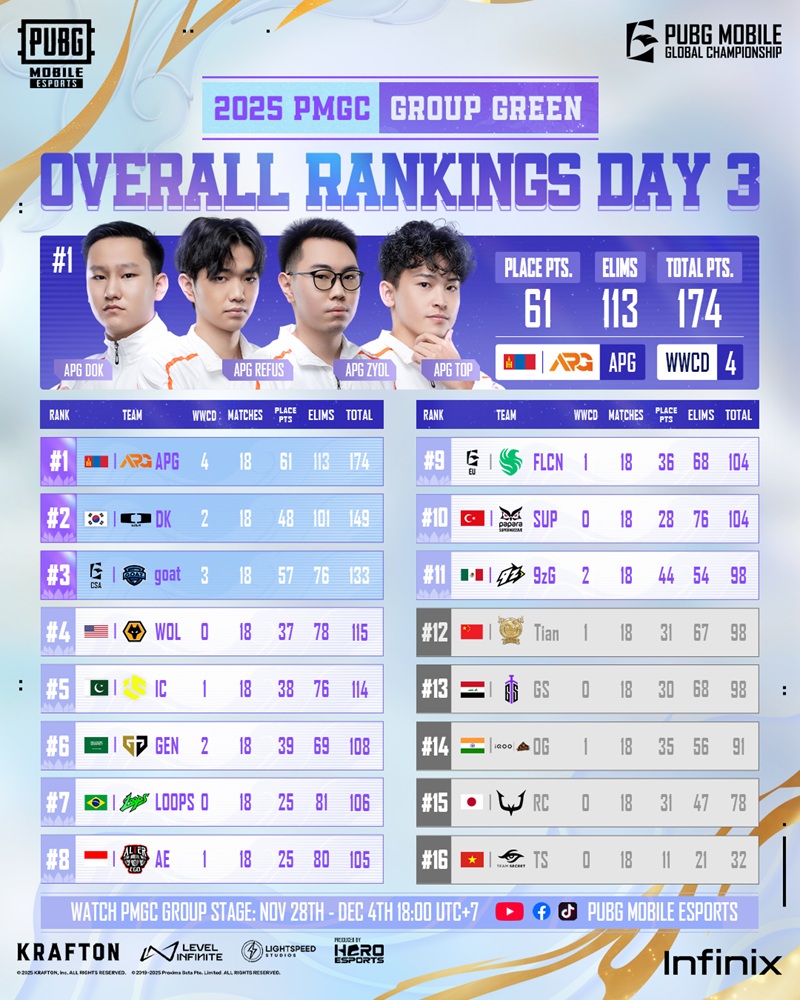 Di sisi lain, lima tim terbawah – Tianba, GS Team, Orangutan, REJECT, dan Team Secret – harus mengakhiri perjalanan mereka lebih awal. Eliminasi cepat tim besar seperti REJECT (juara PMGO 2024 dan runner-up PMWC 2024) menunjukkan betapa sengitnya persaingan di PMGC tahun ini.
