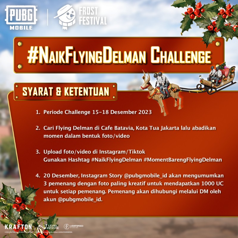 Khusus periode 12 Desember-7 Januari 2024, PUBG MOBILE menambahkan beberapa fitur spesial – Sleigh, Flying Reindeer, dan Surprise Stockings – untuk meningkatkan pengalaman bermain di dalam medan pertempuran.