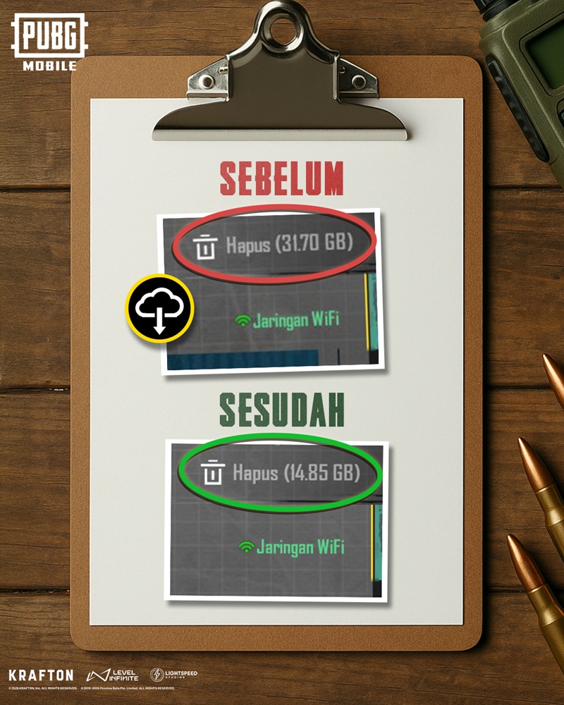 Fitur ini sangat membantu pemain dengan perangkat storage terbatas agar tetap bisa menikmati PUBG MOBILE tanpa khawatir memori cepat penuh.