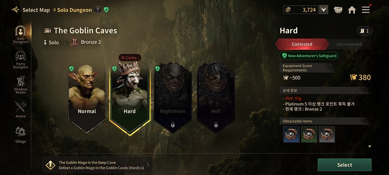 Setelah mengelesaikan tutorial, Dungeon menjadi daya tarik utama di fase awal bermain game ini. Ada 4 tingkat kesulitan di Dungeon Solo, yakni, Normal, Hard, Nighmare dan Hell. Pemain juga dapat memilih mode Ranked (PvPvE) atau Unranked (Non-PvP).