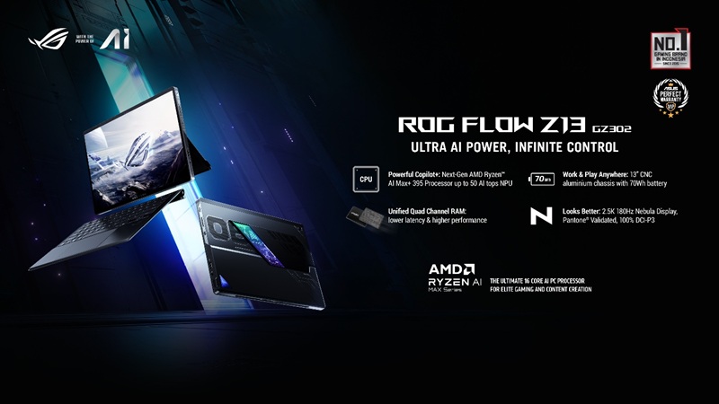 ASUS Republic of Gamers (ROG) memperkenalkan ROG Flow Z13 (2025), tablet gaming paling powerful di dunia, ke pasar Indonesia. Tak hanya menjadi perangkat inovatif, ROG Flow Z13 (2025) juga mencatat prestasi sebagai tablet gaming pertama yang ditenagai oleh prosesor AMD Ryzen™ AI Max+ 395. Perangkat ini bahkan telah terjual habis selama sesi pre-order sejak 19 Februari 2025, membuktikan antusiasme besar dari para gamers.