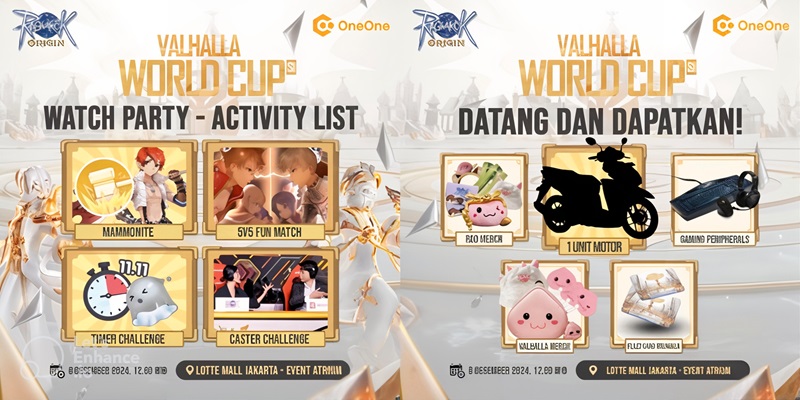 Sebagai bagian dari kemeriahan Valhalla World Cup, kamu bisa mengunjungi Valhalla Watch Party yang diselenggarakan pada tanggal 8 Desember 2024, di Lotte Mall Jakarta. Acara ini dirancang khusus untuk para pecinta game Ragnarok Origin, jadi jangan sampai terlewat keseruannya.