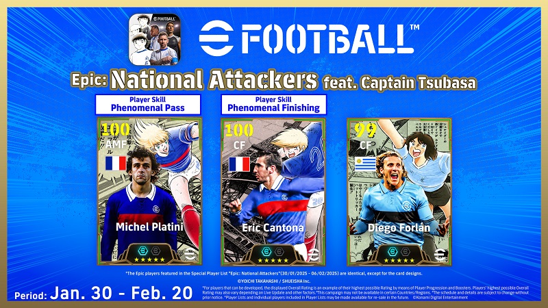 KONAMI mengumumkan bahwa kolaborasi eksklusif antara eFootball dan Captain Tsubasa berlanjut ke Volume 2. Update terbaru ini membawa berbagai hadiah login menarik, termasuk kartu edisi khusus Neymar Jr. dan Lionel Messi yang diilustrasikan oleh Yoichi Takahashi, sang legenda dan pencipta serial komik "Captain Tsubasa". Tidak hanya itu, juga tersedia kartu Epic Crossover yang menampilkan karakter "Captain Tsubasa" dengan pemain sepak bola legendaris terkenal: