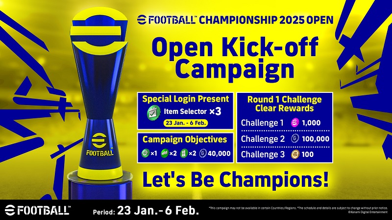 KONAMI juga membuka kualifikasi dalam game secara resmi untuk kejuaraan internasional eFootball Championship 2025. Kejuaraan terbuka ini adalah babak kualifikasi untuk eFootball Championship 2025, yang pada tahun sebelumnya diikuti oleh 39,76 juta peserta. Ini adalah turnamen esports resmi yang dapat diikuti oleh semua pemain, di mana para pemenang kejuaraan terbuka berkesempatan untuk bersaing memperebutkan gelar juara dunia di 'eFootball™ Championship 2025 World Finals', yang rencananya akan diselenggarakan pada musim panas 2025.